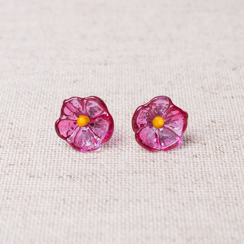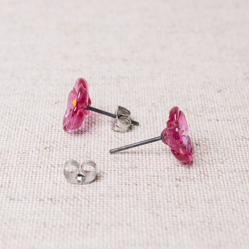Kleine Ohrstecker aus Glas Blume pink – Bild 2